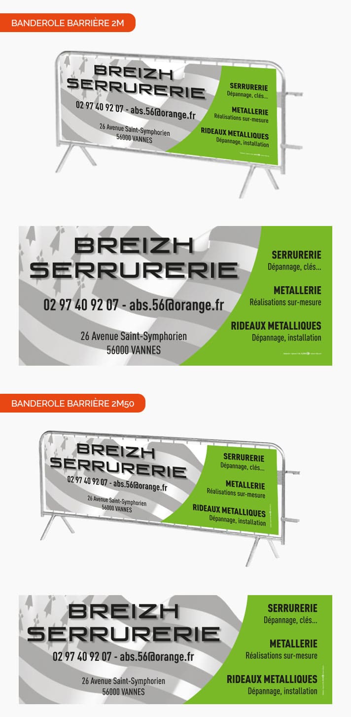 Conception graphique de banderole pour barrière type “Ganivelle” pour l’entreprise Breizh Serrurerie.