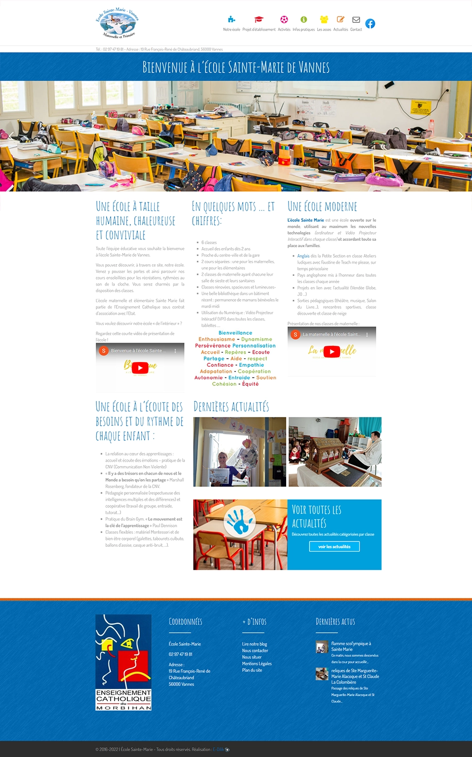 Création du site internet de l’école maternelle et primaire Sainte Marie à Vannes