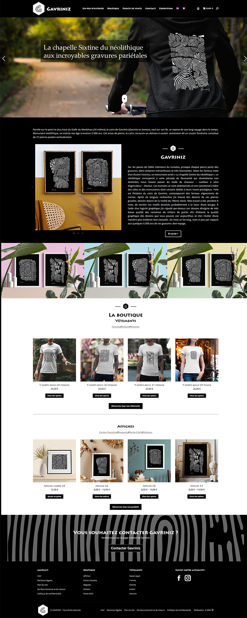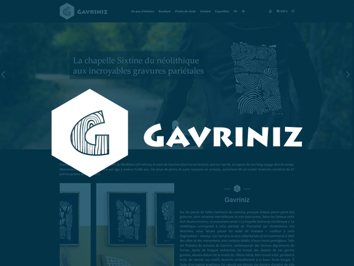 Création du site internet e-commerce pour Gavriniz, la boutique en ligne qui met en avant les gravures du tumulus de Gravinis.
