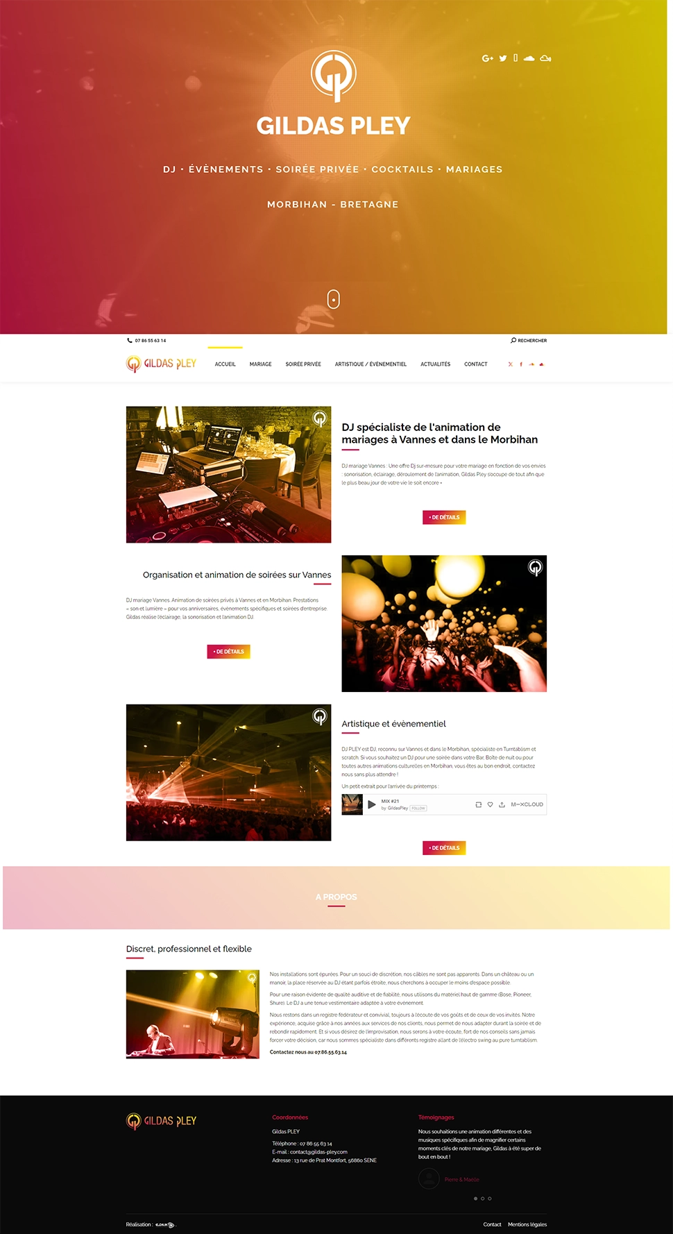 Création d’un site internet en collaboration avec Stratégie d’Image pour le DJ Gildas Pley.