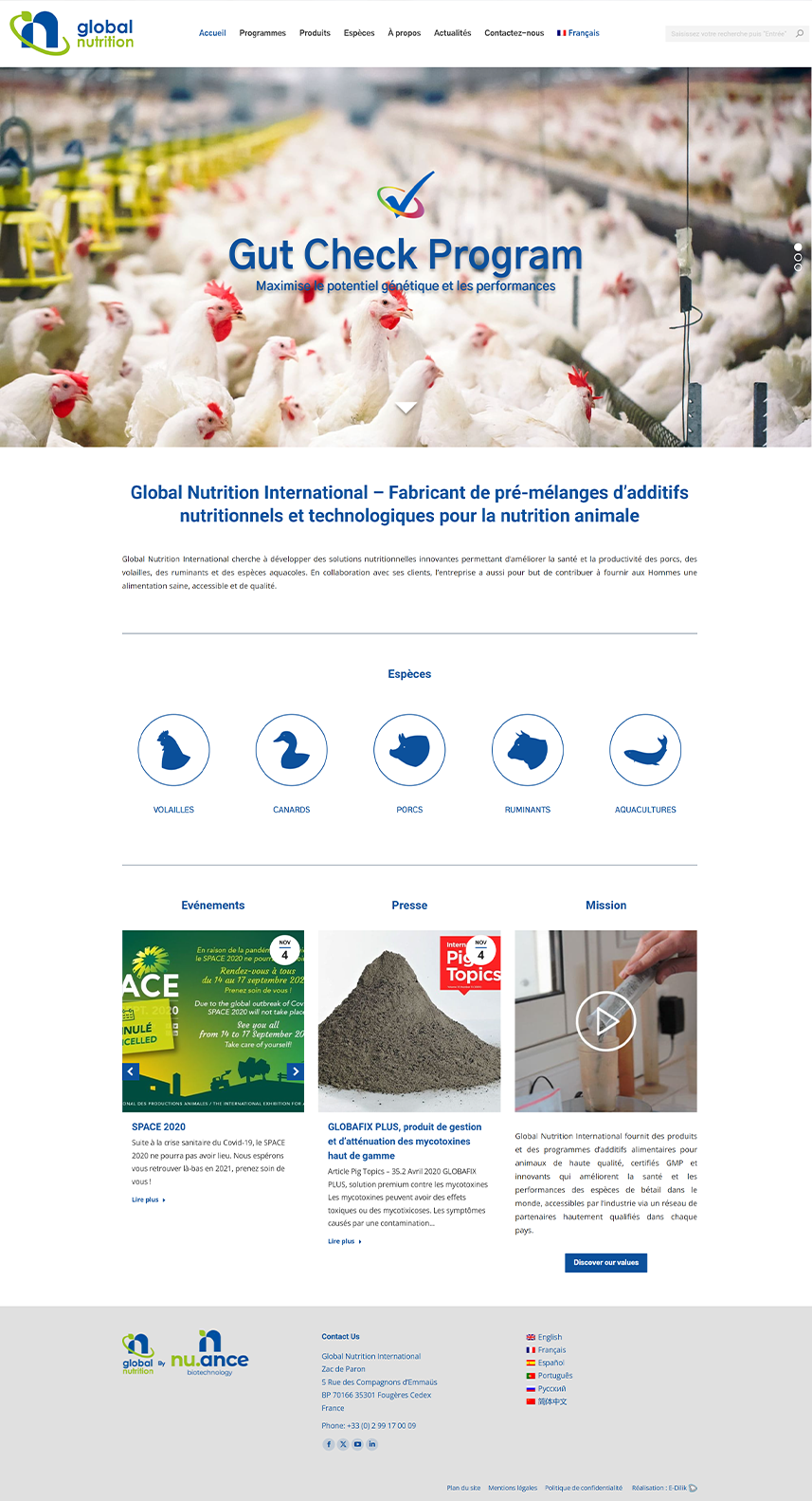 Global nutrition international est une entreprise spécialisée dans la conception et production d’additifs technologiques pour l’alimentation animale.
