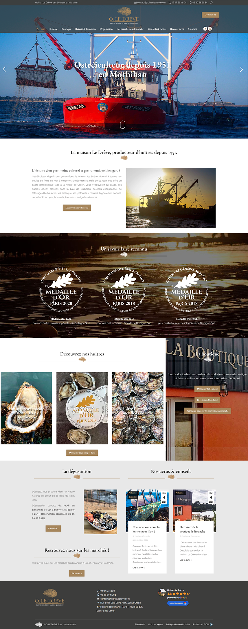 Création du site internet pour l’ostréiculteur Olivier Le Drève situé à Crac’h en Morbihan.