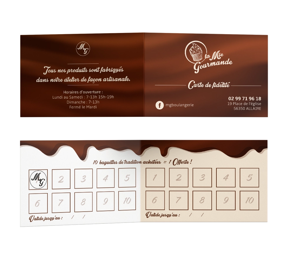 Vectorisation du logo existant et création de carte de fidélité plus tampon fidélité pour la Boulangerie La Mie Gourmande à Allaire (56)