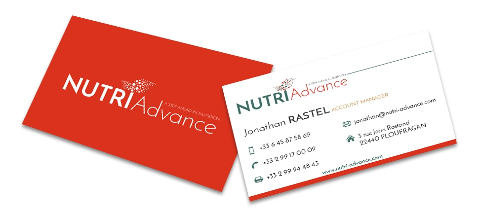 Création d’identité visuelle pour l’entreprise NutriAdvance Feed & Ingredients spécialisée dans les matières premières, aliments composés, pré-mélanges et additifs pour animaux.