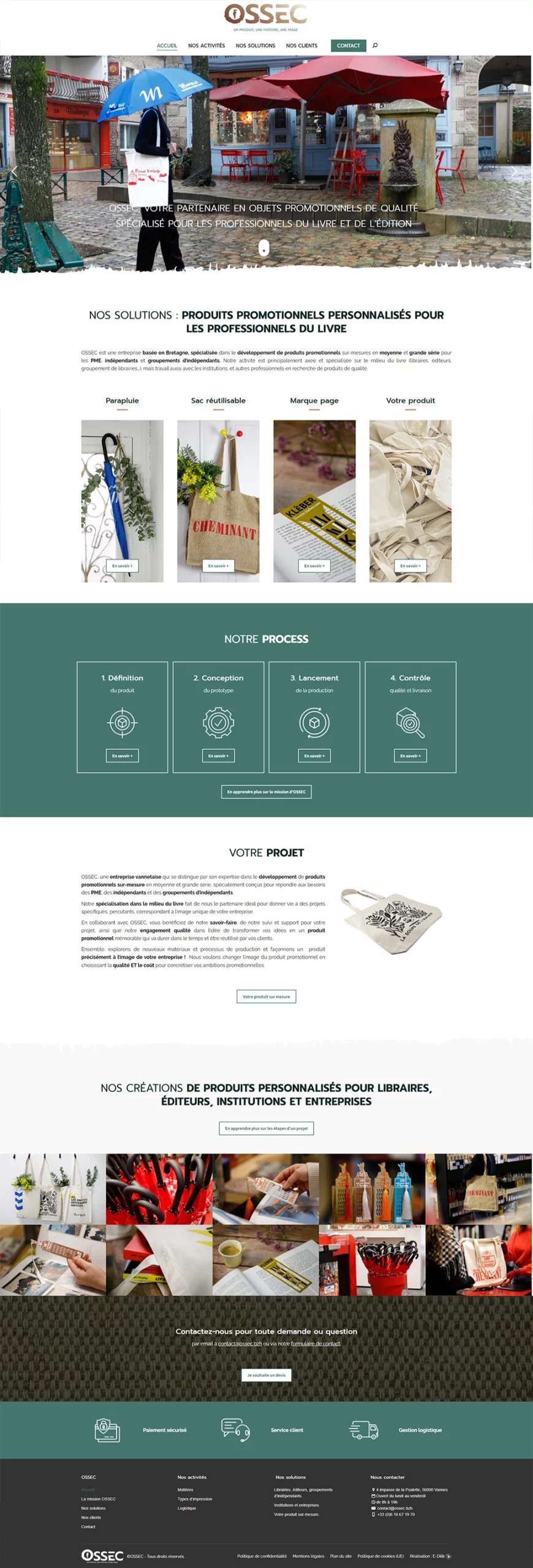 Création de logo et création du site internet pour l’entreprise OSSEC, spécialisée en conception de produits promotionnels sur-mesure notamment dans le milieu du livre.