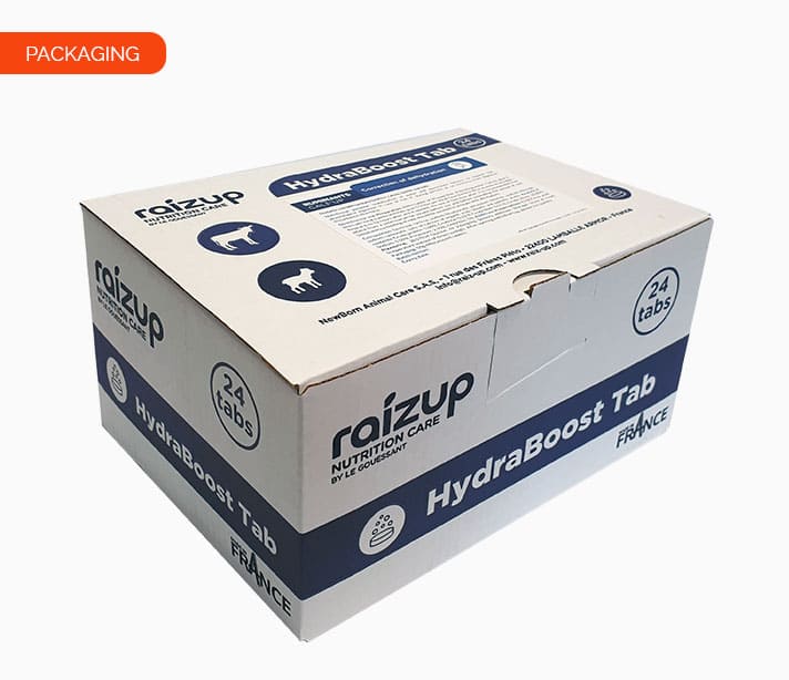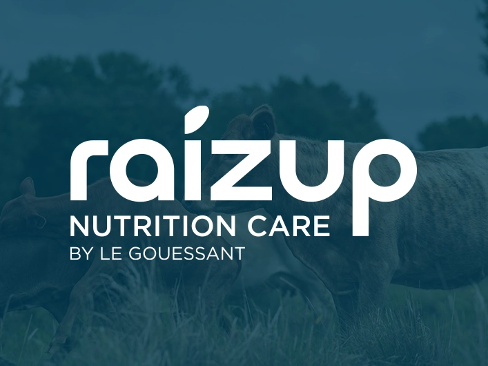 Conception graphique de fiches et étiquettes produits, de dépliants, de prospectus et de panneaux amovibles pour stand de salon pour l’entreprise spécialisée dans la nutrition animale Raizup.