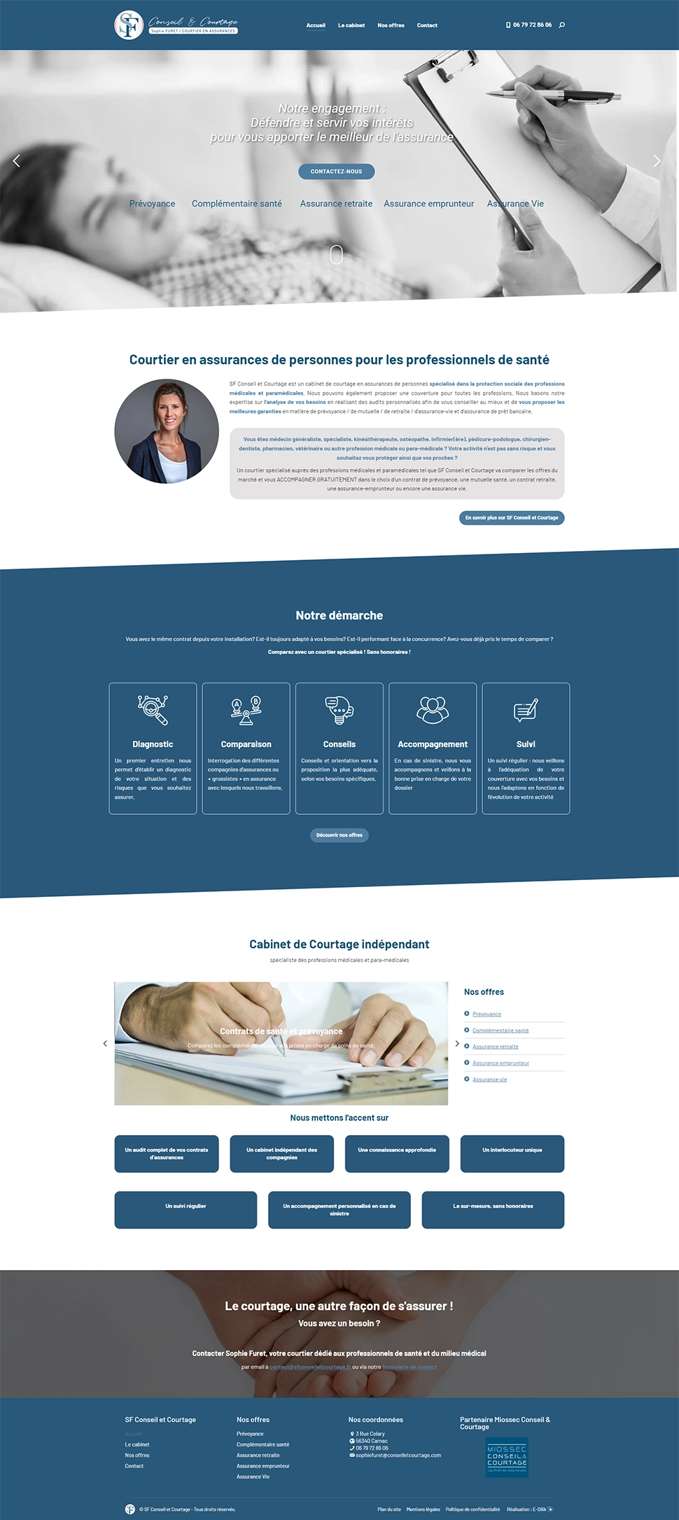 Refonte du site internet vitrine pour SF Conseil et Courtage, un cabinet de courtage en assurances de personnes spécialisé dans la protection sociale des professions médicales et paramédicales.